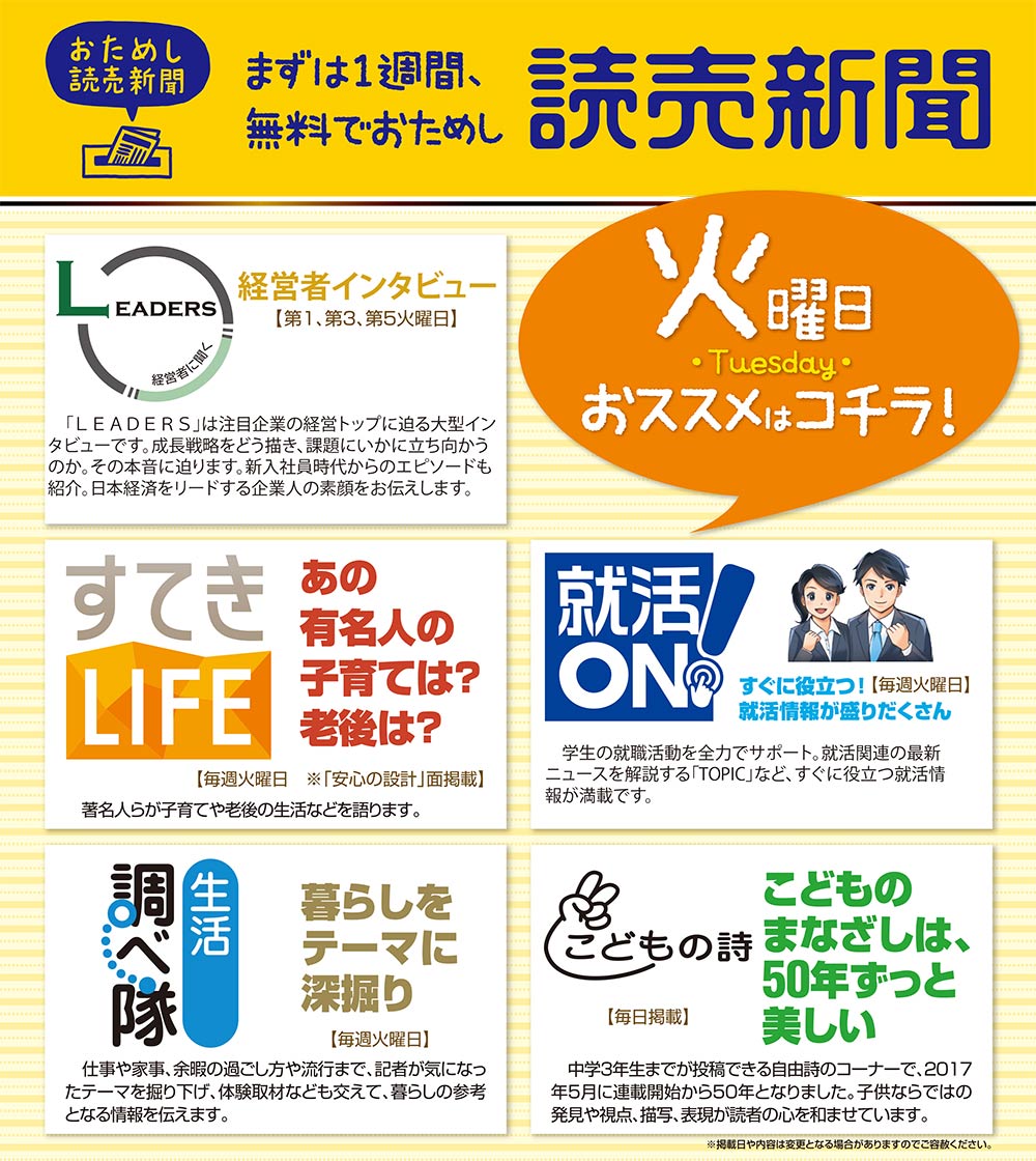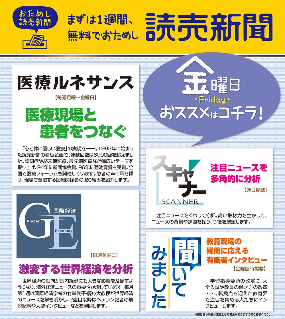 毎週金曜日発行 中学生と高校生に役立つ情報が満載の週刊タブロイド紙 “好奇心のタネ”が盛りだくさん